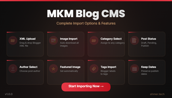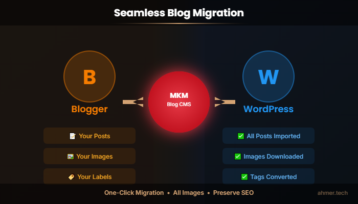 Whether you're a blogger moving to WordPress, a web developer handling client migrations, or an agency managing multiple projects, MKM Blog CMS makes the entire process simple, fast, and hassle-free. No technical knowledge required - just upload your Blogger XML export file and let the plugin handle everything else.