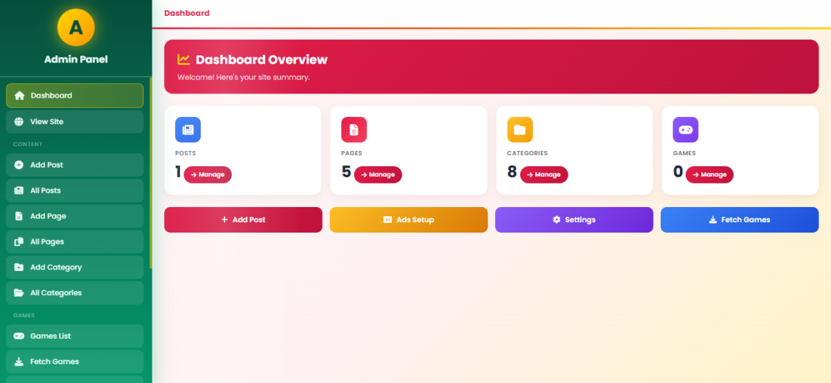 your-website/ ├── admin/ │ ├── index.php (Dashboard) │ ├── profile.php (Author Profile) │ ├── settings.php (Site Settings) │ ├── posts/ │ │ ├── add.php │ │ ├── edit.php │ │ └── list.php │ ├── pages/ │ ├── categories/ │ └── games/ ├── include/ │ ├── config.php (Database Config) │ ├── functions.php (Helper Functions) │ ├── header.php │ ├── footer.php │ ├── ads_helper.php │ └── author_box.php (E-E-A-T System) ├── uploads/ │ └── authors/ ├── index.php (Homepage) ├── post.php (Single Post) ├── page.php (Single Page) ├── game.php (Single Game) ├── category.php (Category Archive) ├── login.php ├── logout.php └── .htaccess